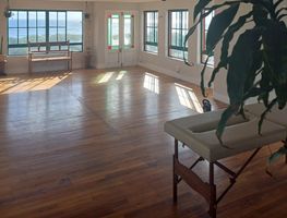 Classes take place in our calm studio overlooking the ocean above Natural Energy Surf Store.